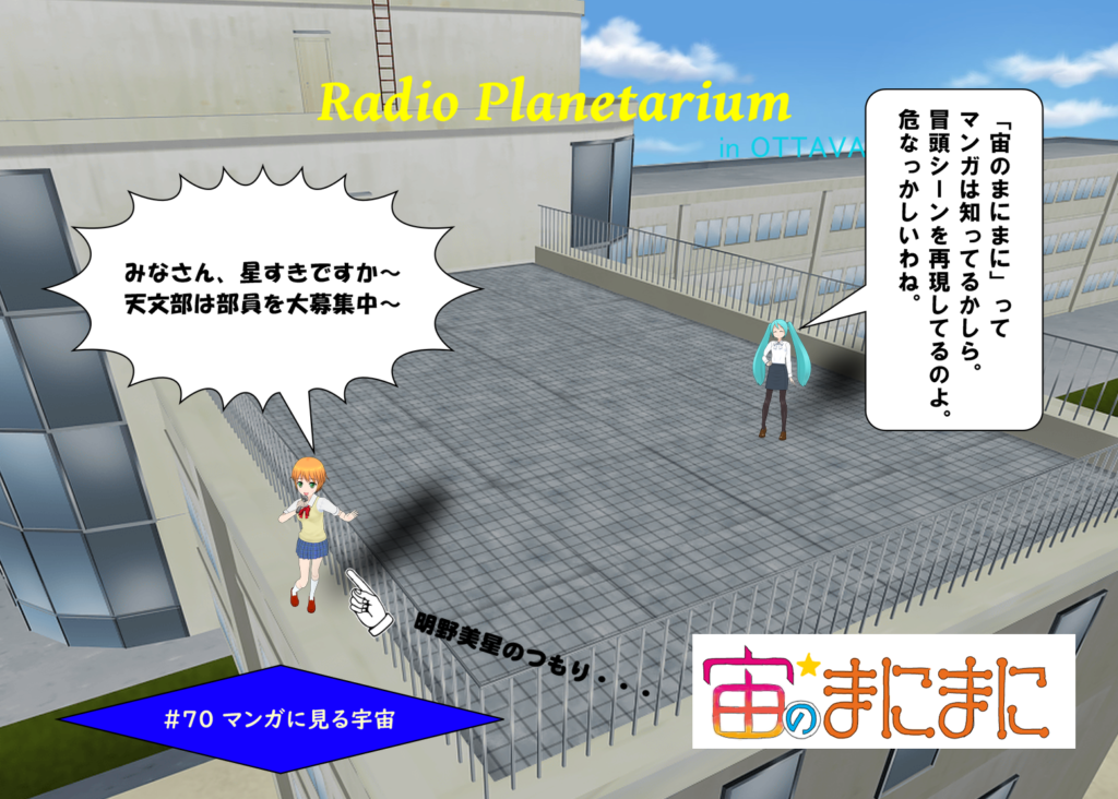 「マンガに見る宇宙」です。宇宙が舞台のもの、宇宙を目指すもの、
