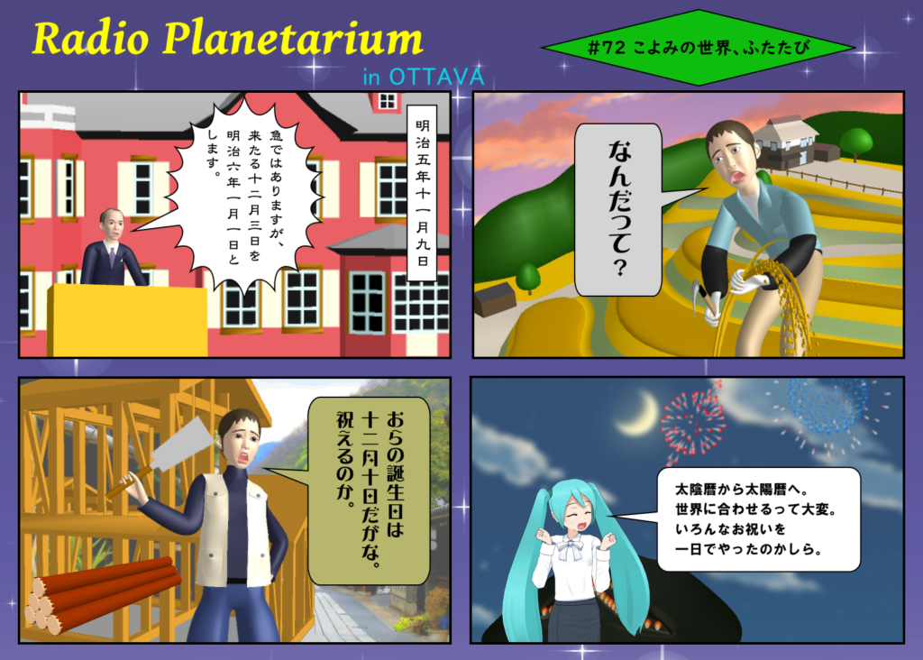 で、今回のラジプラは前回の続編。「こよみの世界、ふたたび」とした。