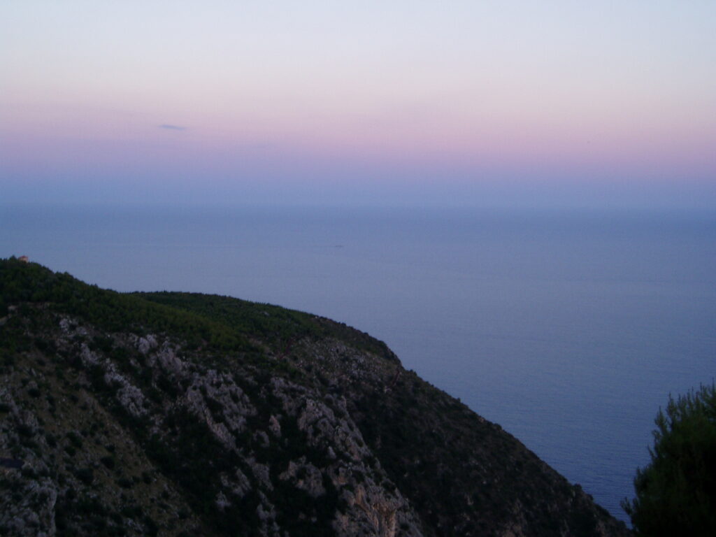 (写真は、もう一度泊まってみたいといつも夢に描く宿、南仏の断崖絶壁の上にそびえる、隠れ宿から見た地中海の夕暮れです。)