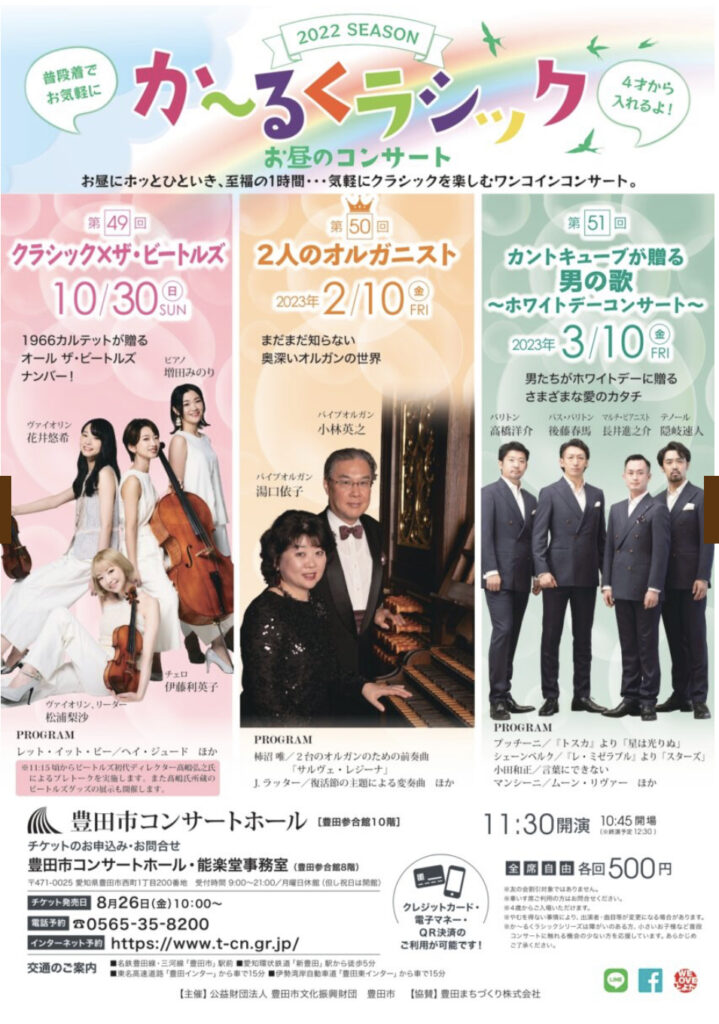 明日は愛知県豊田市の豊田市コンサートホールでお昼のコンサートに出演いたします!