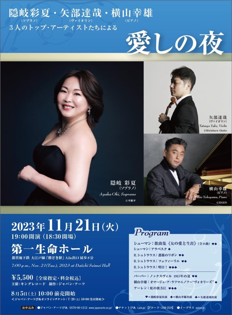 その時の共演者である横山幸雄さんと矢部達哉さんとの共演でリサイタルを開催されます。