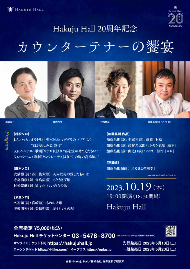 今回の番組が流れる10月19日、村松さんはカウンターテナーの二人の大先輩、