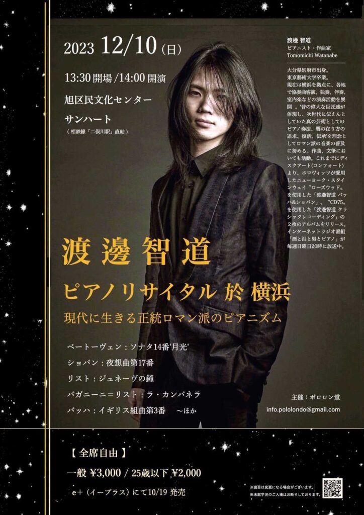 ピアニスト 渡邊智道がお送りする「浪漫探求」3か月ぶりにお届けします。