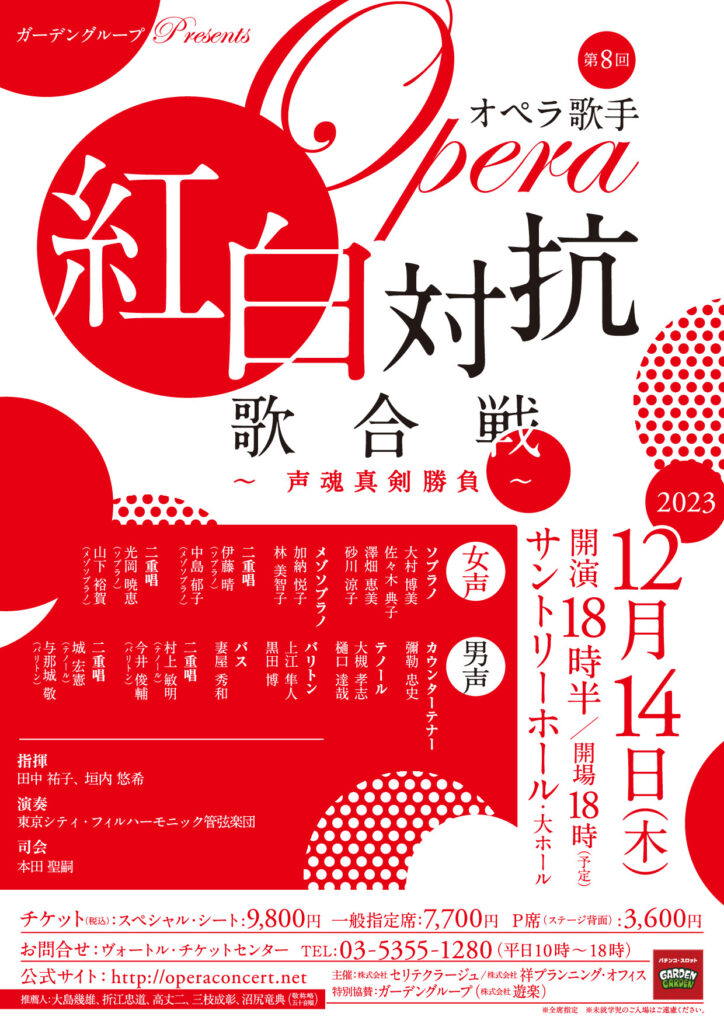 皆様おはようございます。 OTTAVA fresca 水曜日のプレゼンター、本田聖嗣です。 寒くなりそうで、その度にあたたか日がぶり返している東京です。いかがお過ごしでしょうか? 旅が多かったあと、私は東京で忙しくしております・・・明日はいよいよ年に1度の豪華なオペラのお祭り、「オペラ紅白歌合戦」の本番です。 気がつけば、12月ももう残りあと半月ほど。これから怒涛のクリスマス、そして年末年始に突入していきそうです。音楽家は、音楽会や、発表会や、試験などで慌ただしい月日を送っております。 今日も、いつもの世界の気になるニュースとして、ウクライナ・中東情勢に、そして度の話題としては、年末にまた京都に行くので、その話題など、グルメとしては、いよいよ私もおでん・温かい麺類・煮込み・シチューなどを食べているので、そんな話題を取り上げたいと思います。 生放送ですので、リクエストお待ちしております。クラシック曲のリクエストは、曲名を挙げていただいても、私に選曲をお任せいただくフレーバーリクエストでも結構です。また、いつもの通り、リクエスト以外の普通のお便りも大歓迎です。季節の話題、音楽の話題、旅の話題、温かい料理の話題、その他日常の話題、幅広くどんな話題でもお待ちしております。 いただいたお便りは、私のみならず、全世界のリスナーさんとシェアさせていただきます。 来週は大学院の試験のため、事前収録放送となりますので、特にリクエストに プレゼンター本田宛、メールアドレスは、[email protected]です。 それでは、9時の放送開始をいましばらくお待ちください。 本田聖嗣 (写真は、東京都心でも紅葉が見頃となってきました。旧昌平黌、湯島聖堂の様子です。そして、いよいよ明日!オペラ紅白歌合戦のフライヤーです。)