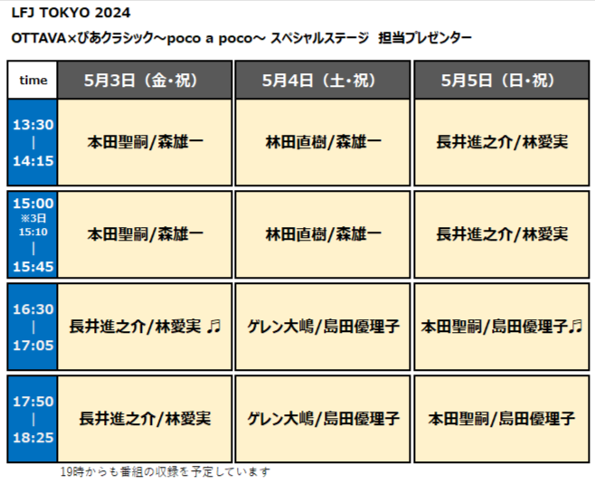 スケジュールと、MCを担当するプレゼンターが決まりました。