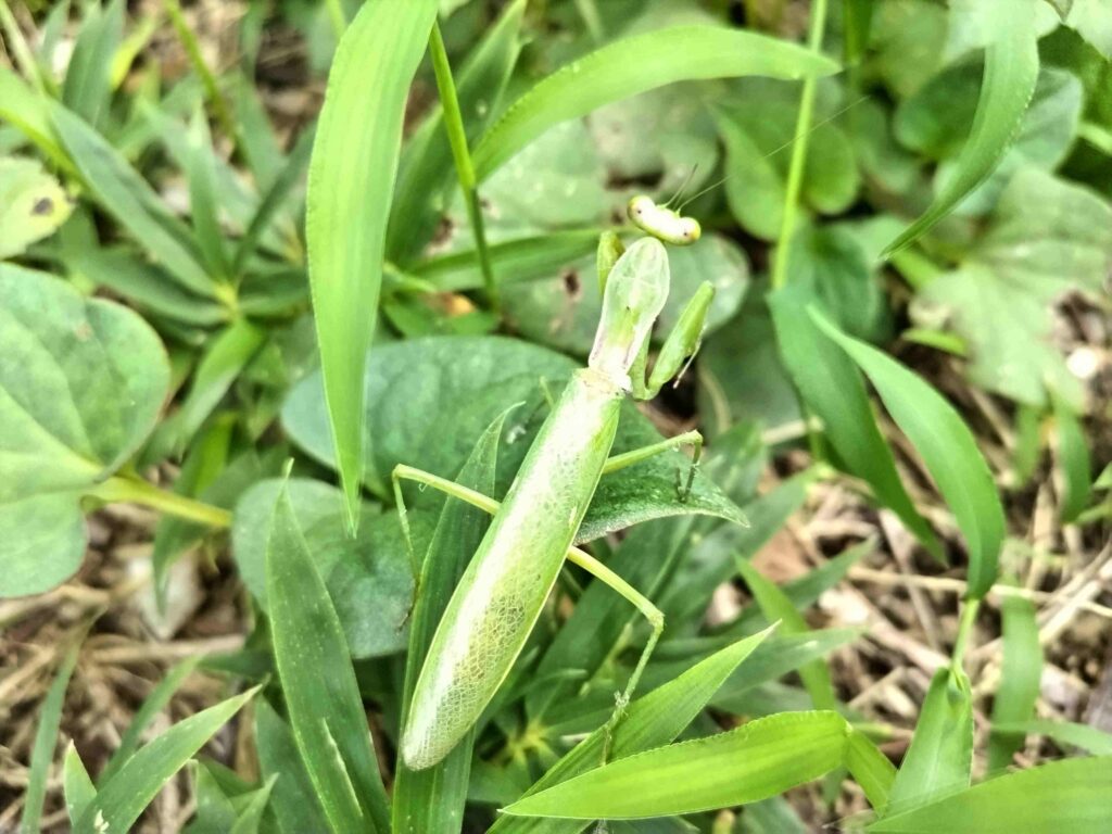 マンションの片隅で息も絶え絶えになっていたカマキリを草むらに返してあげました。