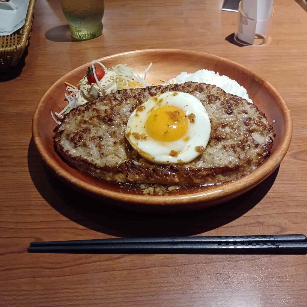 さんからのオススメは「ガリバーハンバーグ」なのでそれに乗ってみた。でかい。400グラム