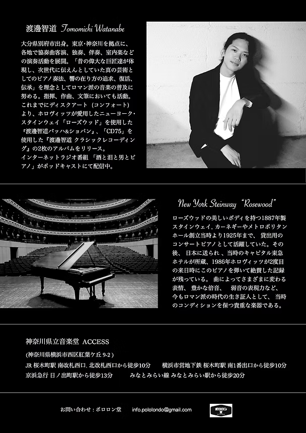 スタインウェイ〝ローズウッド〟を使用した「渡邊智道 バッハ&ショパン」、