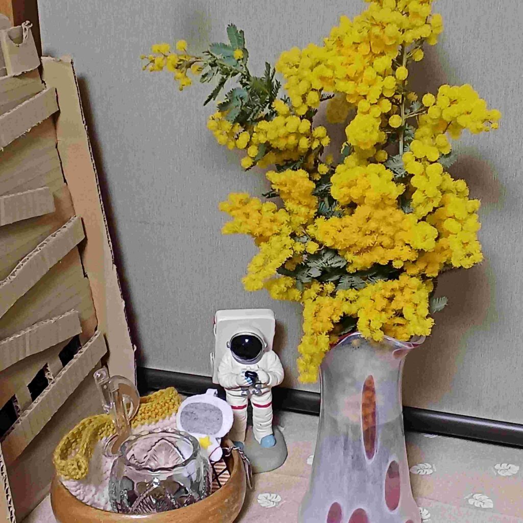二週間ほど前に誕生花でミモザが出てきたと思いますが、この度、初めてミモザが森家に