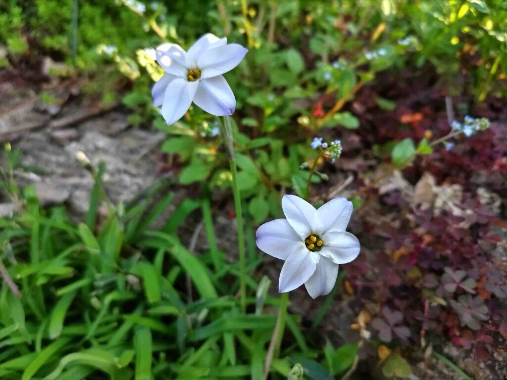 ハナニラの星形の花が目に付くようになりました。