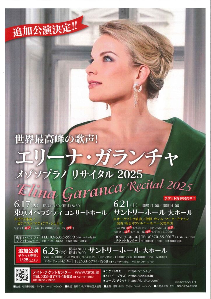 後半はエレーナ・ガランチャ 3年ぶりの来日公演ほか