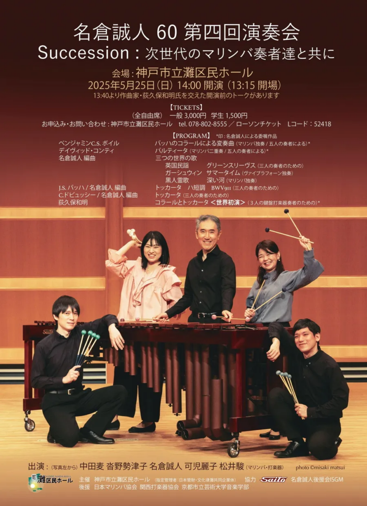 「Succession:次世代のマリンバ奏者達と共に」(5月25日 神戸市立灘区民会館)の