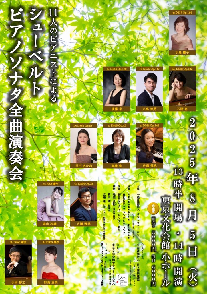 シューベルトのピアノソナタが11人のピアニストによって聞ける貴重な機会です。奮ってご応募ください!