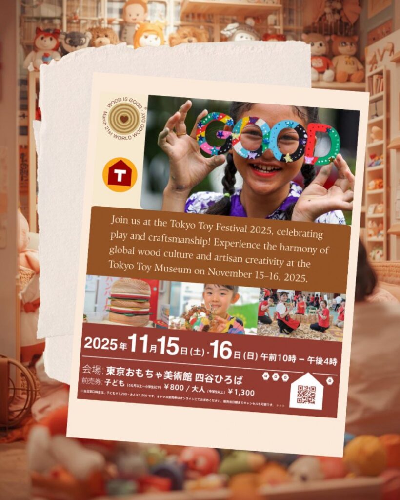 まず、11月15日(土)〜16日(日) に、東京おもちゃ美術館で開催される 【東京おもちゃまつり】に、《ワールド・ウッド・デー2025日本大会》の一環として幾つかのブースを出展します。