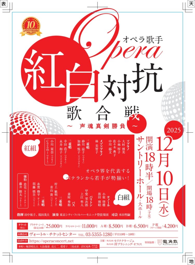 (写真は、本日開始から10年を迎える「オペラ紅白歌合戦」のフライヤーです。)