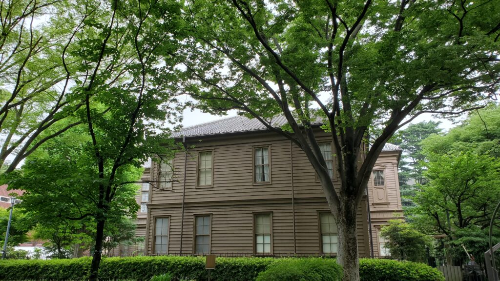(画像は、雨上がりの緑が眩しい、旧東京音楽学校奏楽堂の風景です。)